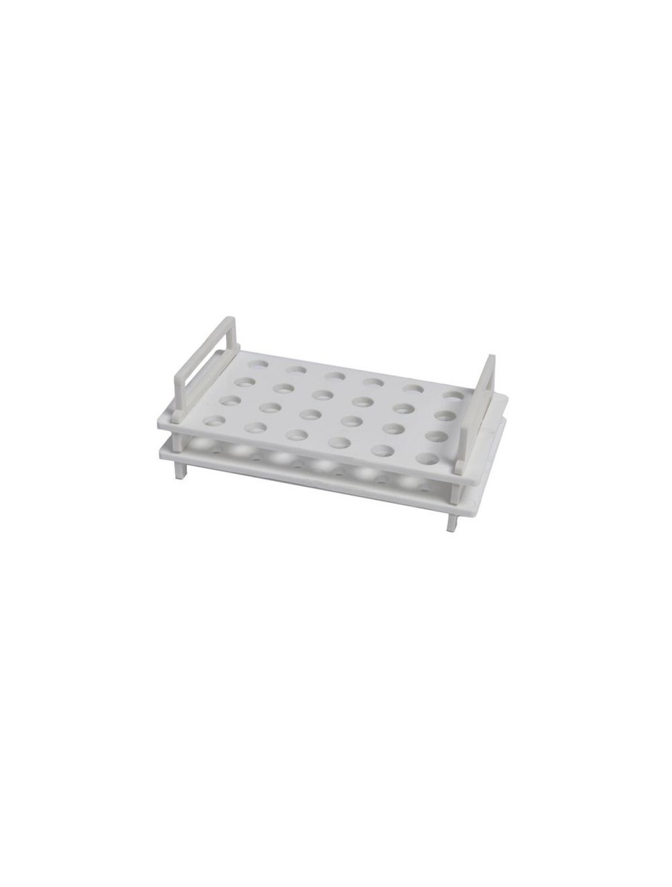 Polycarbonate racks hold 1.5ml microcentrifuge tubes. Unique design allows racks to be securely stacked on top of each other. Includes alphanumeric grid for easy identification of tubes. Autoclavable.
