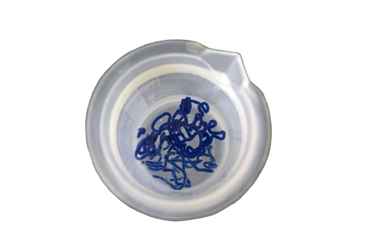 - The solution is then added to a sulfuric acid solution and dark strands are formed.