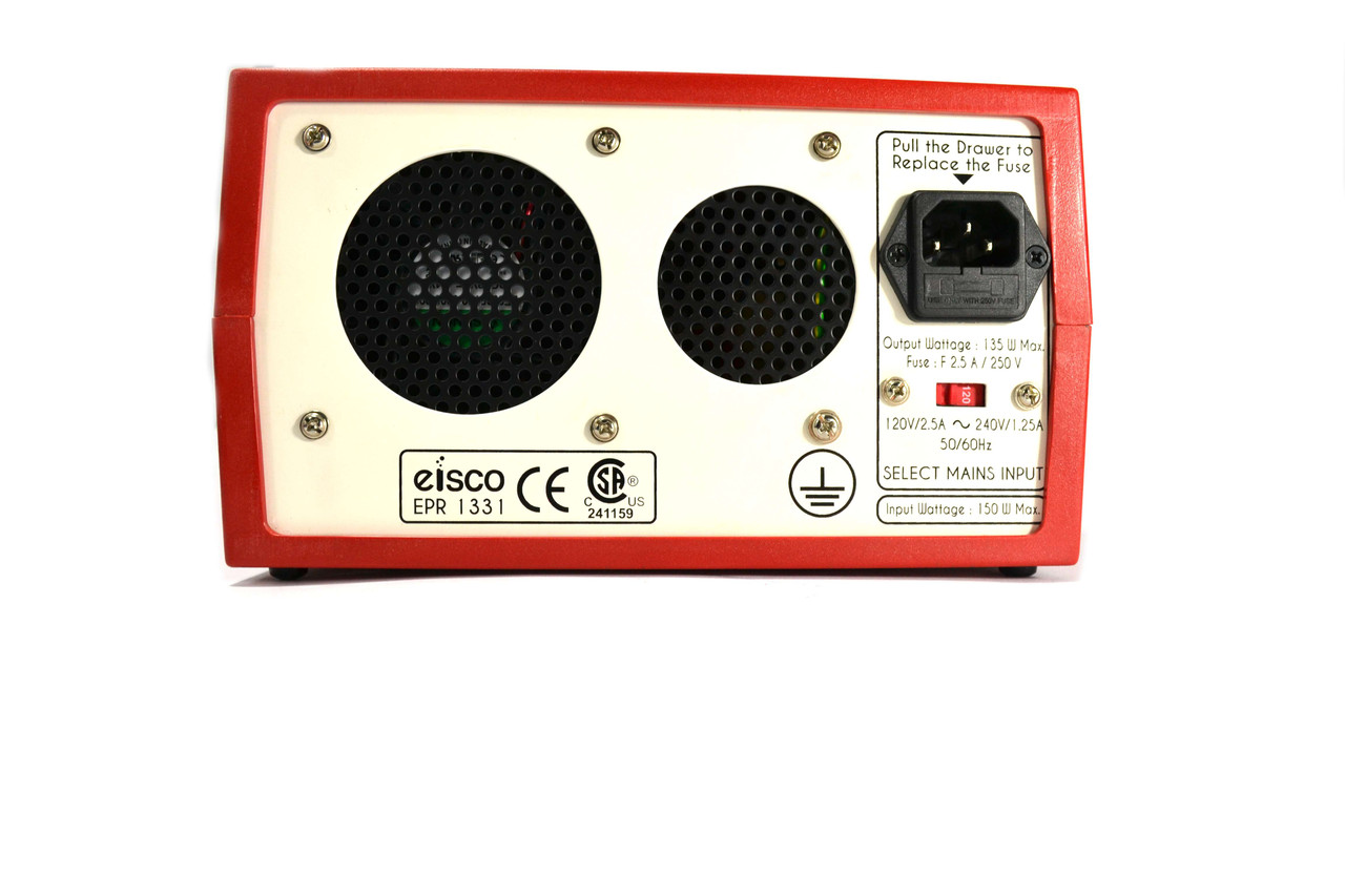 An extremely versatile independent power dual output power supply. Both outputs can be used simultaneously and viewed via independent LED displays. DC: 0-12V is regulated and continuously variable. AC: 12V at 5amps. Safety features include an overload protection indicator, thermal cut-off, glass fuses at the input level, and a spare fuse in the main input socket. The unit has been tested for leakage, burn test, and insulation test and is CSA-approved. The unit operates on 120V AC or 240V AC using a voltage selector switch on the back of the unit. Output sockets are standard 4mm banana plug sockets. Ripple and noise are measured at 50mVp-p. (Banana Plugs Not Included)