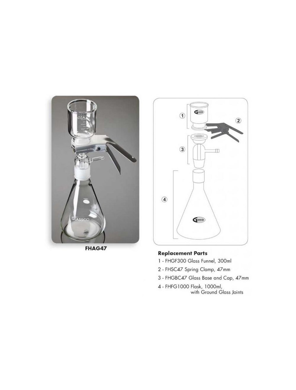 - Replacement glass base and cap for All-Glass Vacuum Filter Holder Set (FHAG47)