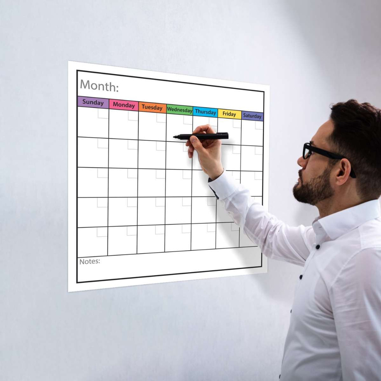 - Dry Erase, Reusable monthly calendar