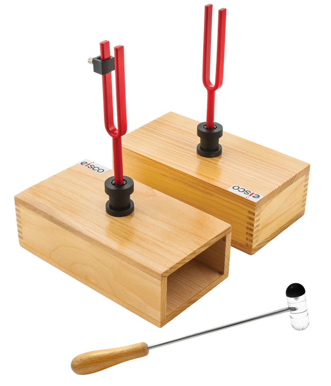 Resonant Tuning Forks Mounted on Pine Boxes, Set/2 - 440 Hz