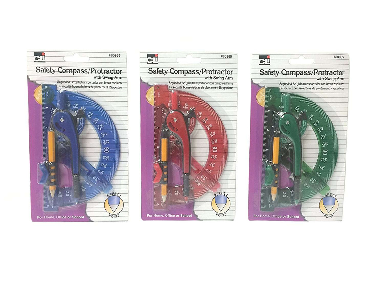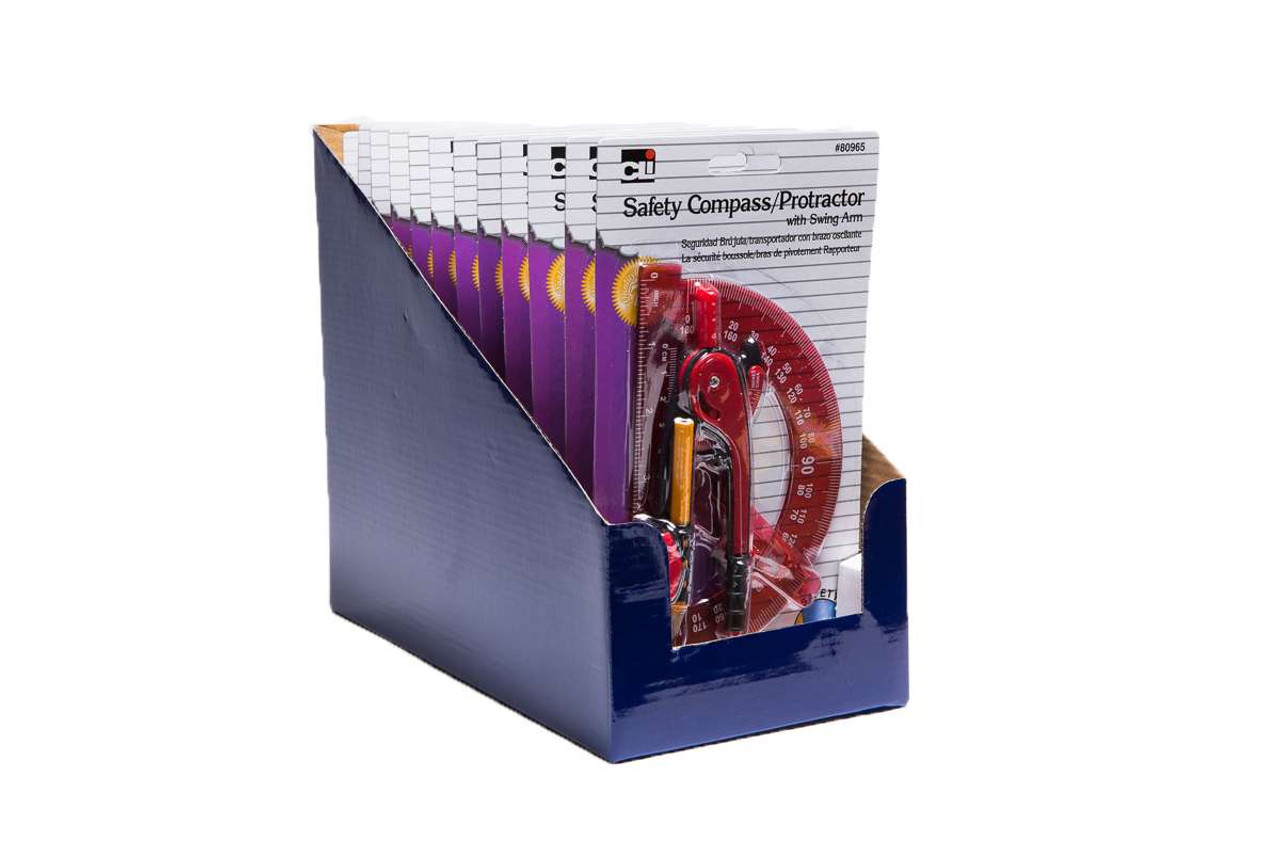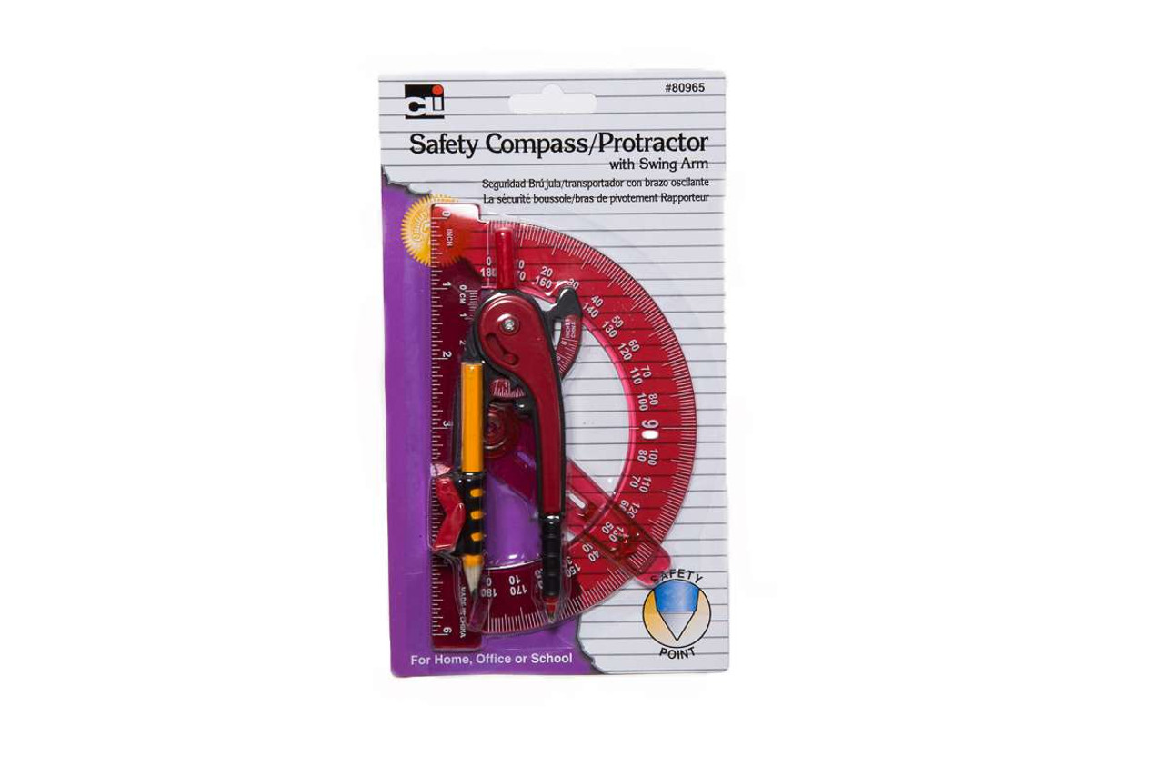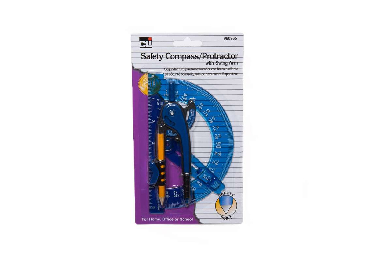 Safety Compass & Protractor with Swing Arm, Assorted Colors
