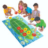 Bring your ten-frame activities to the "Froggy Pond" for small-group learning. This floor mat is a huge 3ft x 5ft (91.4cm x 152.4cm) and features a beautiful and realistic water scene with a large ten-frame leaf floating in the center and surrounded by lily pads. The lily pads feature numerals and the water droplets on each lily pad match the number as a visual reference to numbers 1-10. The floor mat is made of durable and washable phthalate-free PVC. Also included are 10 two-sided 6" (15.2cm) diameter Froggy Discs, one side red, the flip side yellow for a variety of ten-frame learning fun. A plastic storage tray for discs is also included.