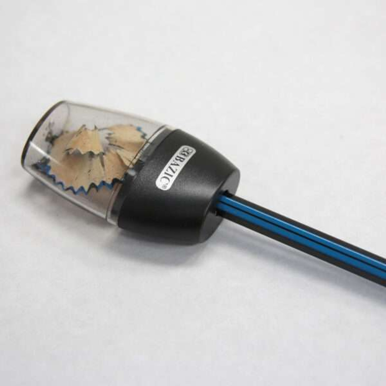 - SINGLE HOLE SHARPENING. Measure 2.4" x 1.5" x 0.75". 1 blade sharpeners fits Regular/Small/Colored pencils and crayons. Available color: purple, pink, green, orange. Non-toxic and odorless.