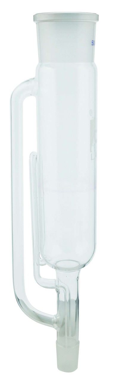 The Soxhlet Extraction Apparatus is used in the extraction of lipids and other materials from a solid sample when the desired compound has limited solubility in a solvent. It allows for unmonitored and unmanaged operation while efficiently recycling a small amount of solvent to dissolve a larger amount of material. Applications include the production of CBD, tinctures, and aromatic alcohols; food testing; biofuels; and environmental analysis of soils, sludge, and wastes. Assembled in 3 separate sections: boiling flask, extractor chamber, and condenser. Interchangeable standard joints. Glass parts only; metal stands not included. Extractor chamber capacity: 1,000mL; flask capacity: 3,000mL.