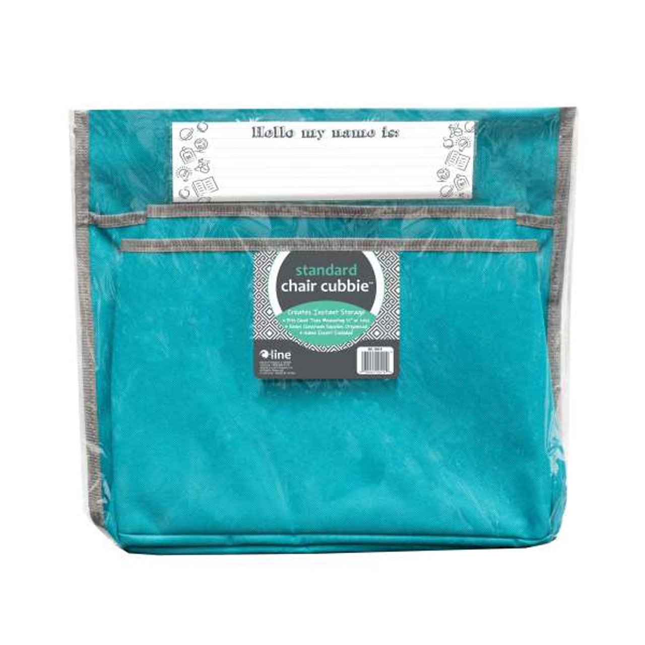 - Personalize the holder by inserting a name card into the vinyl pocket that is stitched to the top of the Chair Cubbie.