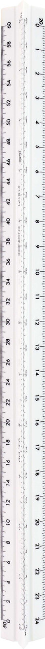 Entry level Architectural Scale perfect for the beginning student! Durable white plastic scale features easy-to-read graduations. Classic triangular shape means graduations are easy to read from all angles. Engineer Scale features the following graduations: 1/10, 1/20, 1/30, 1/40, 1/50, and 1/60 inch.
