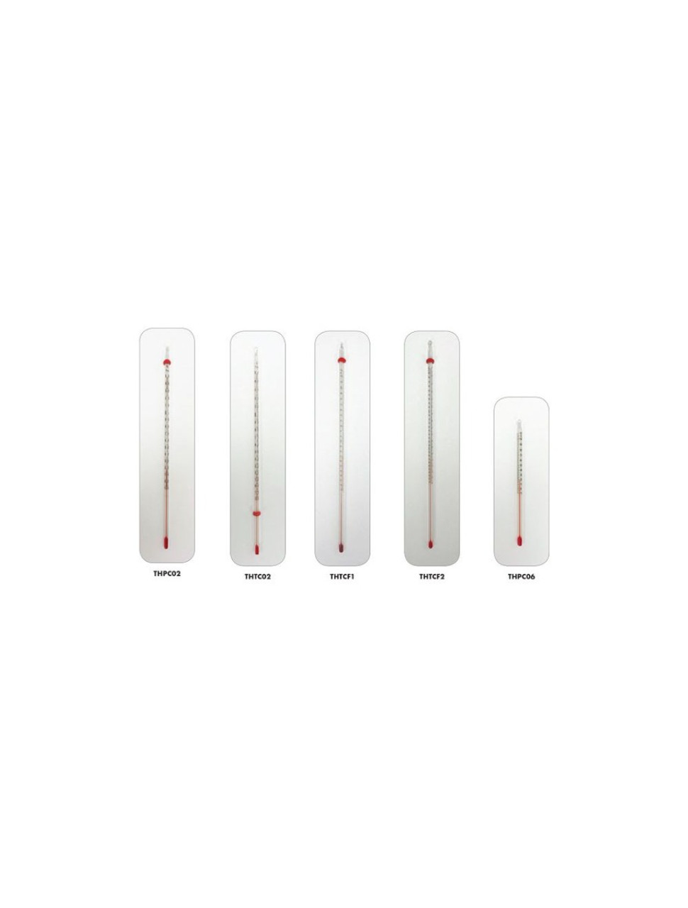 Red spirit-filled thermometers provide increased safety and economic pricing. They contain a kerosene-based column with red dye, which is significantly safer than mercury. These thermometers all have 6 to 7mm outer diameters, and the bulbs have equal or smaller diameters than the stems.