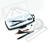 The Maped Study 10 Piece Geometry Set is perfect for geometry, drawing and measuring because it comes with everything you need to get the job done! Durable metal compasses are ergonomically designed and work with compass leads or any standard pencil or thin pen. 6" Ruler, triangles & protractor are all made of crystal-clear material so you can easily see what you are measuring. Set comes packed in a reusable storage case and includes 2 Metal Study Compasses, 6” Ruler, 4" Protractor, 2 Triangles (45° & 30°/60°), Pencil for Compass, Pack of leads, Eraser & Pencil Sharpener.