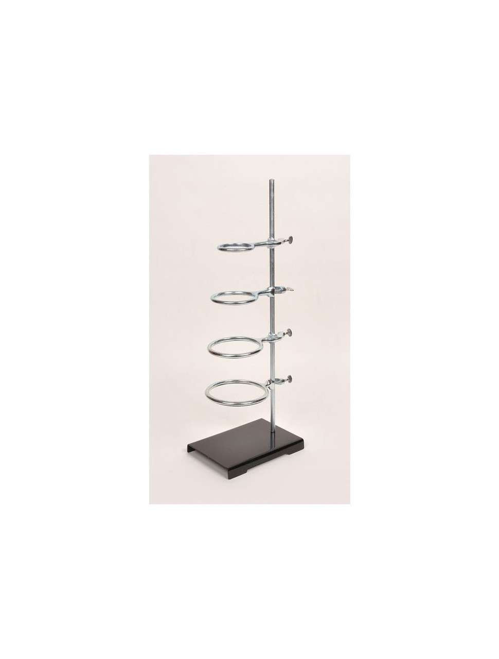 - Set includes stamped steel base, zinc-plated steel rod and two cast iron rings with boss head clamps