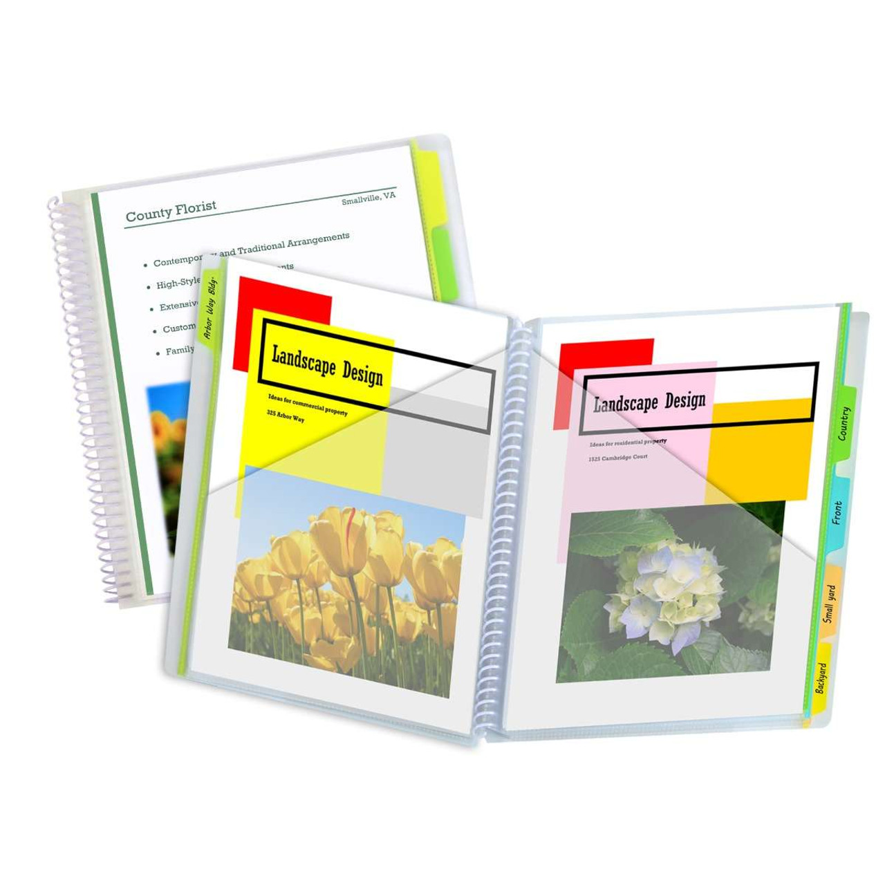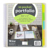 This spiral-bound organization product stores notes and documents in a protective holder. Suitable for both students and professionals, the sleek outer cover provides a stylish appearance to the portfolio. Organize projects, subjects, notes, and more in one convenient place. Ten interior pockets allow for detailed organization. Write-on tabs make for quick and easy custom organization; work with a pencil, ball point pen, or permanent marker. The spiral-bound portfolio features a clear-view front pocket for the cover sheet. Made of heavyweight acid-free polypropylene. For letter-size documents. Clear cover and pockets with assorted color tabs.