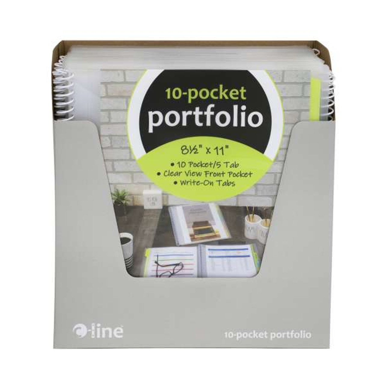 Ten Pocket Poly Portfolio-5 Write-On Tabs-Clear-View Cover-Spiral Bound-Pack of 12