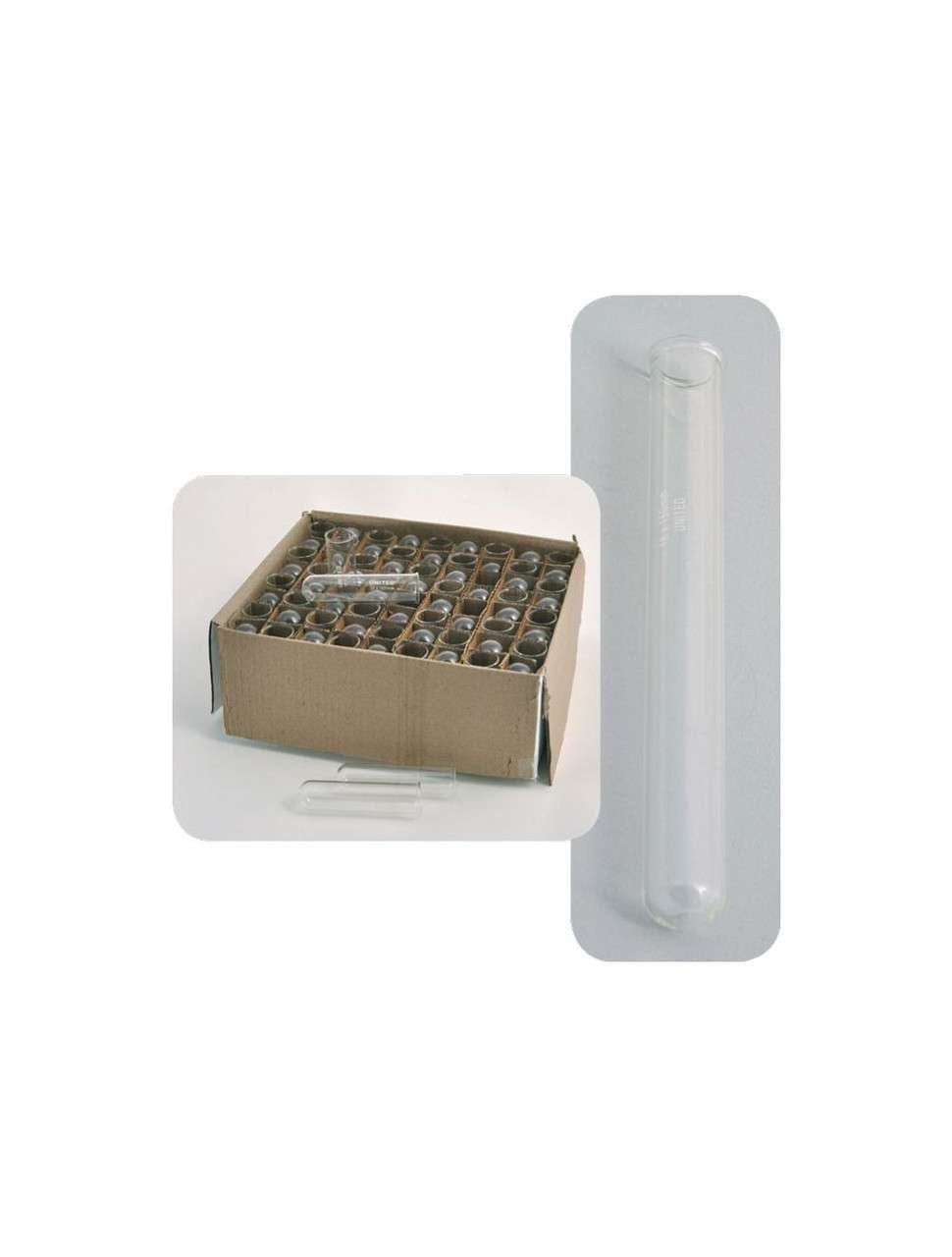 Pack of 50 unrimmed borosilicate glass test tubes, 38mm x 200mm, with 175ml capacity. Ideal for hot or cold applications. Tubes are pre-cleaned, reusable and autoclavable.