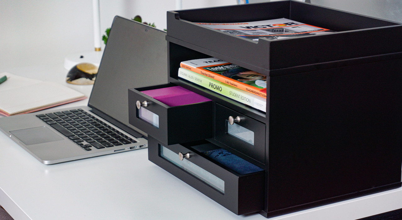 The Victor desktop organization products bring a fresh perspective to desk accessories by offering functional solutions with appealing design elements. The 5500 Tidy Tower provides a vertical design that makes the most out of limited space. Perfect for use either at home or in the office, the Tidy Tower is a great addition to any desk.