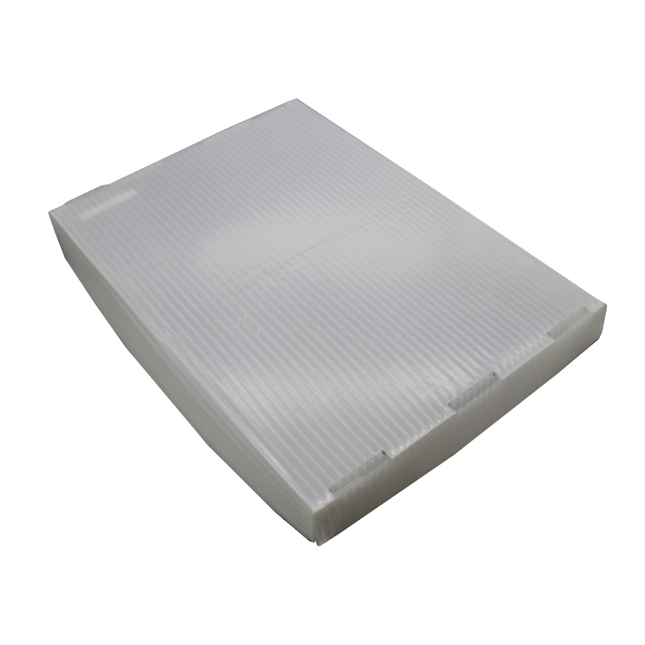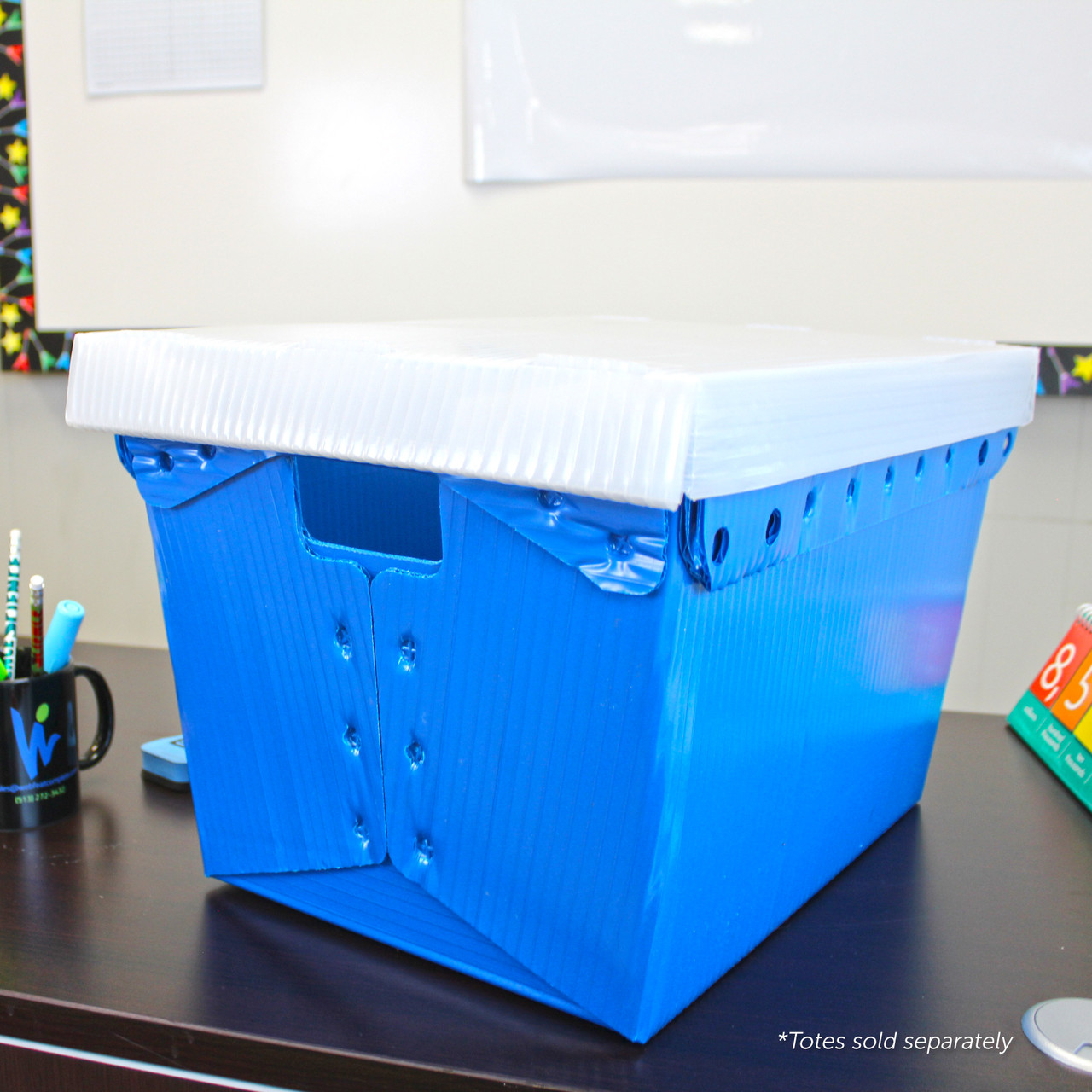 Lid for Corrugated Plastic Storage Postal Totes. Corrugated Plastic Storage Postal Totes are an 11 US gallons rugged utility tote. For added strength and rigidity, the totes are reinforced with a wire rim and are sonically welded at key stress points. Wrapped hand holes make for easier handling. These lids are sold separtly form the bins and allow the totes to be stacked. Shipped flat, with easy assembly. Fits the 18.25" x 13.25" x 11.6" Postal Tote.