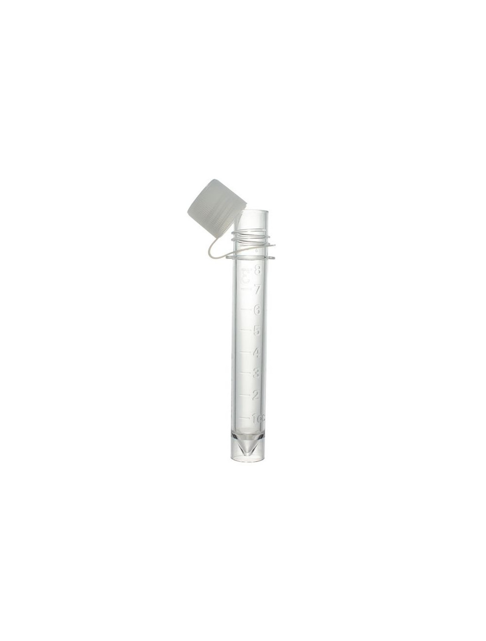 Pack of 500 sterilized polystyrene transport tubes with 8cc capacity. Feature raised graduations from 1 to 8cc with graduation intervals of 1cc. Designed with flat bottom for self-standing. Include leak-proof polyethylene screw caps.