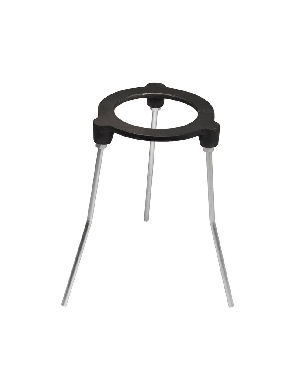 Cast iron ring with black enamel finish measures 3.5" in outer diameter. Zinc-plated legs are detachable and can be used with rings of various sizes. Overall height is 6".