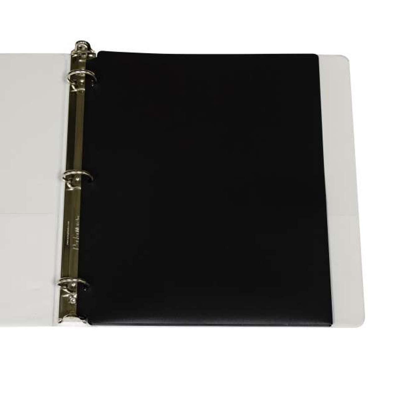 Need some help keeping your three-ring binder in order? With the help of these specialty two-pocket folders, letter-size papers can stay organized, while still remaining accessible. Two-pocket heavyweight polypropylene portfolios/folders with three-hole punch hold papers and resist tearing. Features three-hole punching for secure storage in standard 3-ring binders. Cut-outs at the top and bottom keep the portfolio from being caught in the binder open-close mechanism. Black. 25 EA/BX.