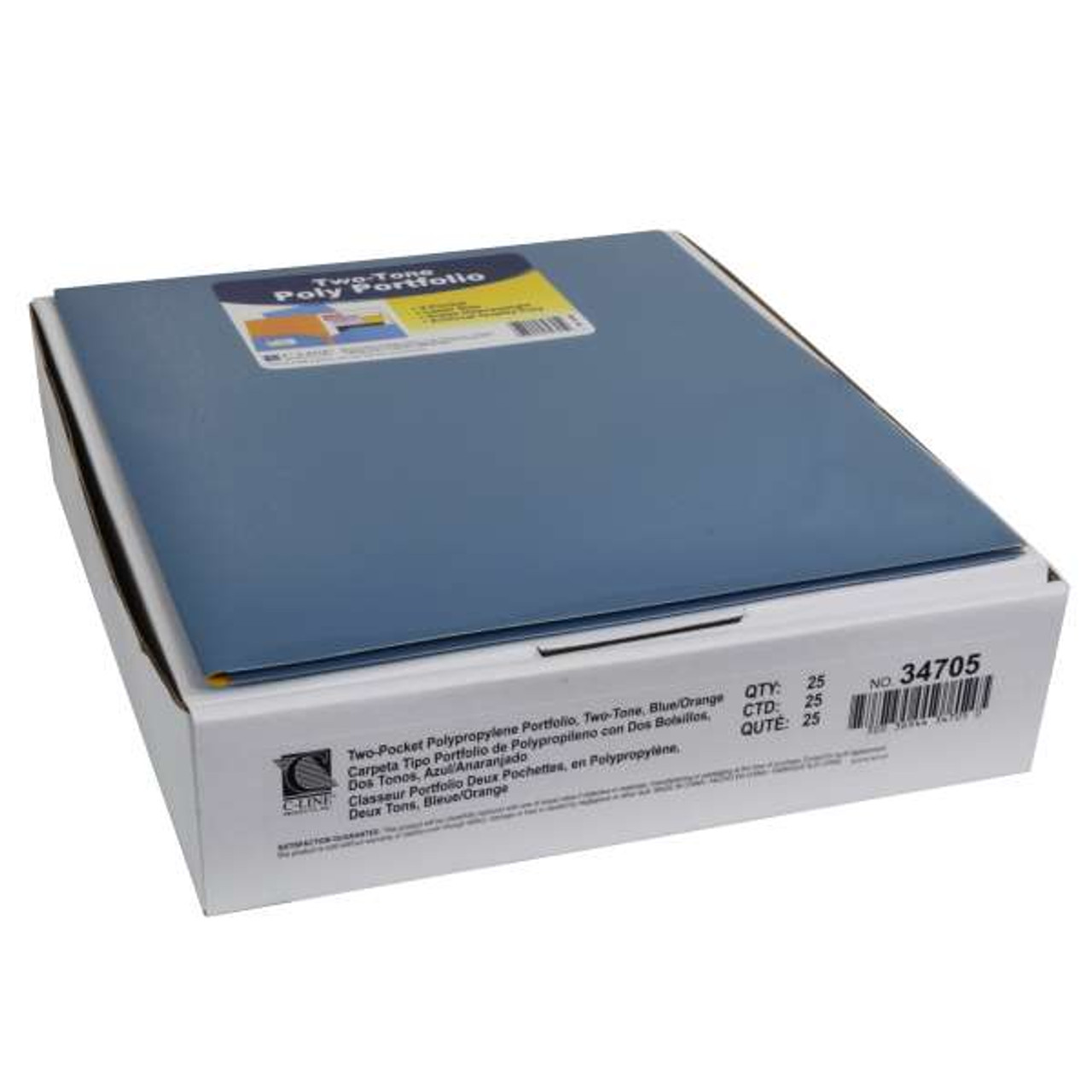 Two-Tone Two-Pocket Super Heavyweight Poly Portfolio, Steel Blue/Amber Orange (Set of 25 Folders)