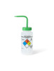 United Scientific™ UniSafe™ vented wash bottles are made from industrial grade low-density polyethylene with polypropylene stem closure and venting assembly. They are pre-printed with the Chemical name and formula, the National Fire Protection Association (NFPA) Section 704 Four-color Diamond, health hazards, Chemical Abstract System (CAS) number, and suggested protective clothing and equipment. Each bottle is compliant with GHS and OSHA requirements outlined in Hazard Communication Standard 29 CFR 1910.1200. Intended for use only with LDPE and PP compatible solvents.