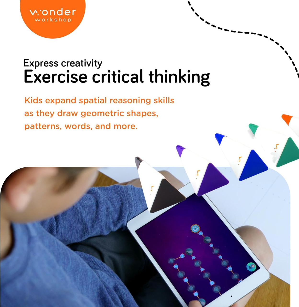 - ENHANCE CREATIVITY & CRITICAL THINKING: The Sketch Kit for kids complements Dash the robot and helps kids express their creativity and exercise critical thinking and spatial reasoning skills as they draw geometric shapes, patterns, words, and more.