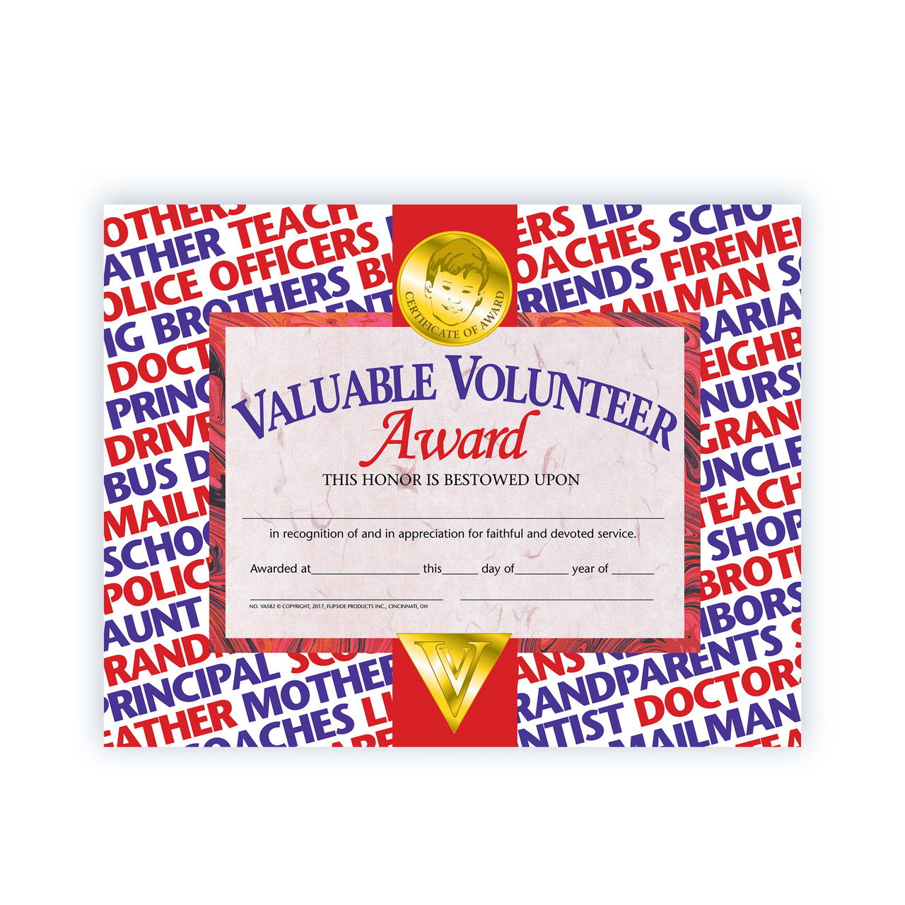- Valuable Volunteer Award Certificates are awarded to those who are recognized for their commitment to volunteering