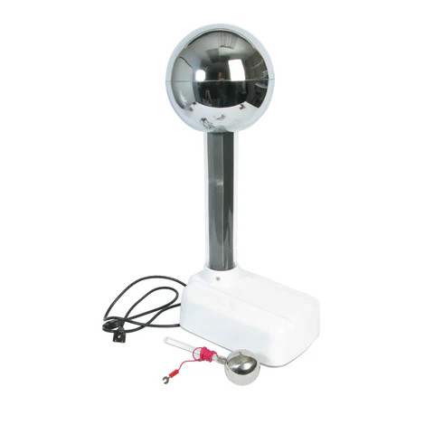 SKU: 253592- The Van de Graff Generator is an electrostatic generator which uses a moving belt to accumulate electric charge on a hollow metal globe on the top of an insulated column, creating very high electric potentials of 250,000 volts.