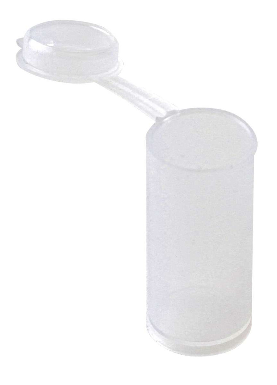 - General purpose plastic vial containers with push-in friction fit hinged lids.