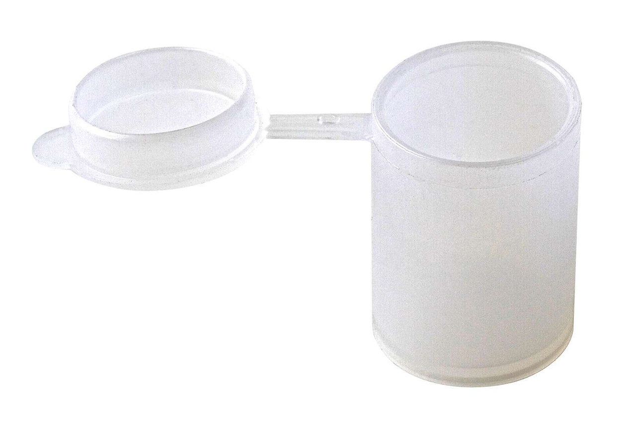 - General purpose plastic vial containers with push-in friction fit hinged lids.