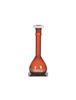 Borosilicate glass volumetric flask with 250ml capacity, amber-colored to protect light-sensitive materials. Manufactured as per ASTM E288 Class A serialized glassware specifications and calibrated to contain (TC). Heavy-duty and uniform wall thickness, with a wide mouth for easy pipette access.