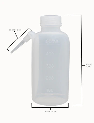 - This wash bottle can hold up to 500ml of solution, made from low-density polyethylene.