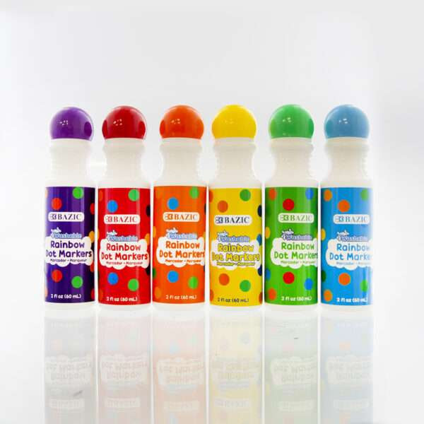 - VIBRANT COLORS. Washable dot markers (60ml each) come in 6 different colors; Green, Blue, Purple, Red, Yellow and Orange. It's really a good art supply for toddlers and kids. Actual Colors May Vary!