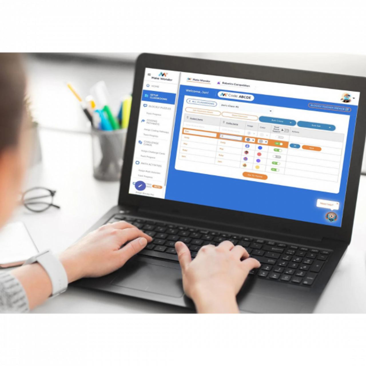 The Make Wonder platform provides everything you need to create a coding curriculum, no matter your level of experience. Assign any of the pre-built lessons or activities from a menu of fun challenges and exercises, and track progress with a detailed teacher dashboard.
