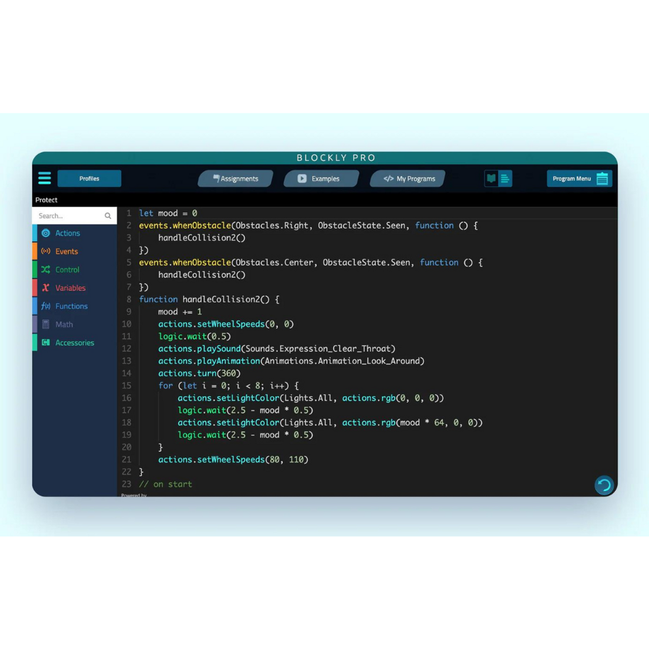 And now with Blockly Pro (for use with a physical Dash Robot and a Chrome Browser), students can transition to text-based coding and a more advanced experience. What’s more, they can toggle between blocks and JavaScript on-screen to bridge the gap while learning.