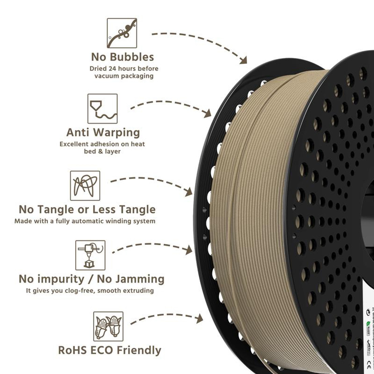 Wood PLA 3D Printing Filament, 500g Roll