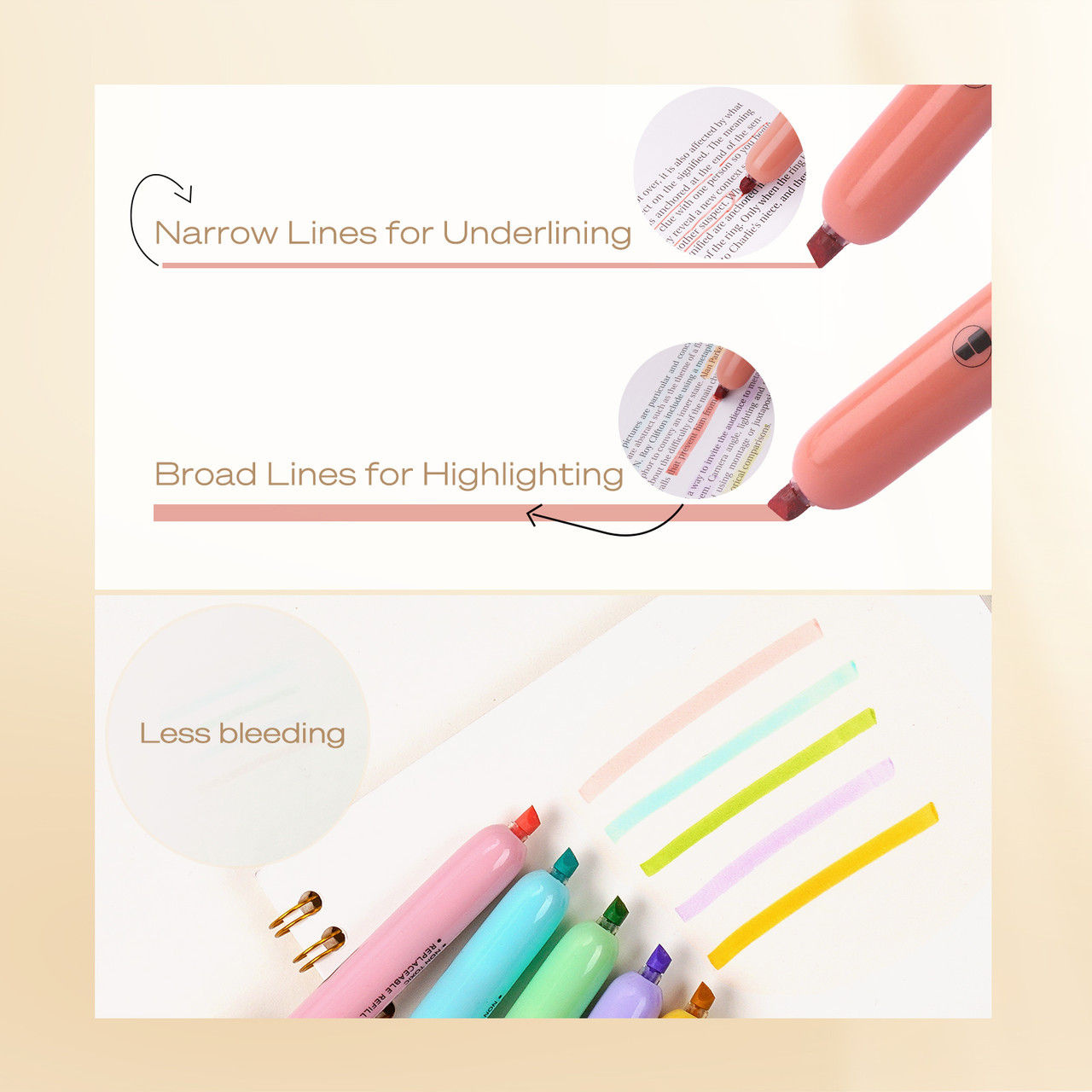 - These aesthetic highlighter pens feature vivid, fade-resistantance ink and color won't bleed through most paper