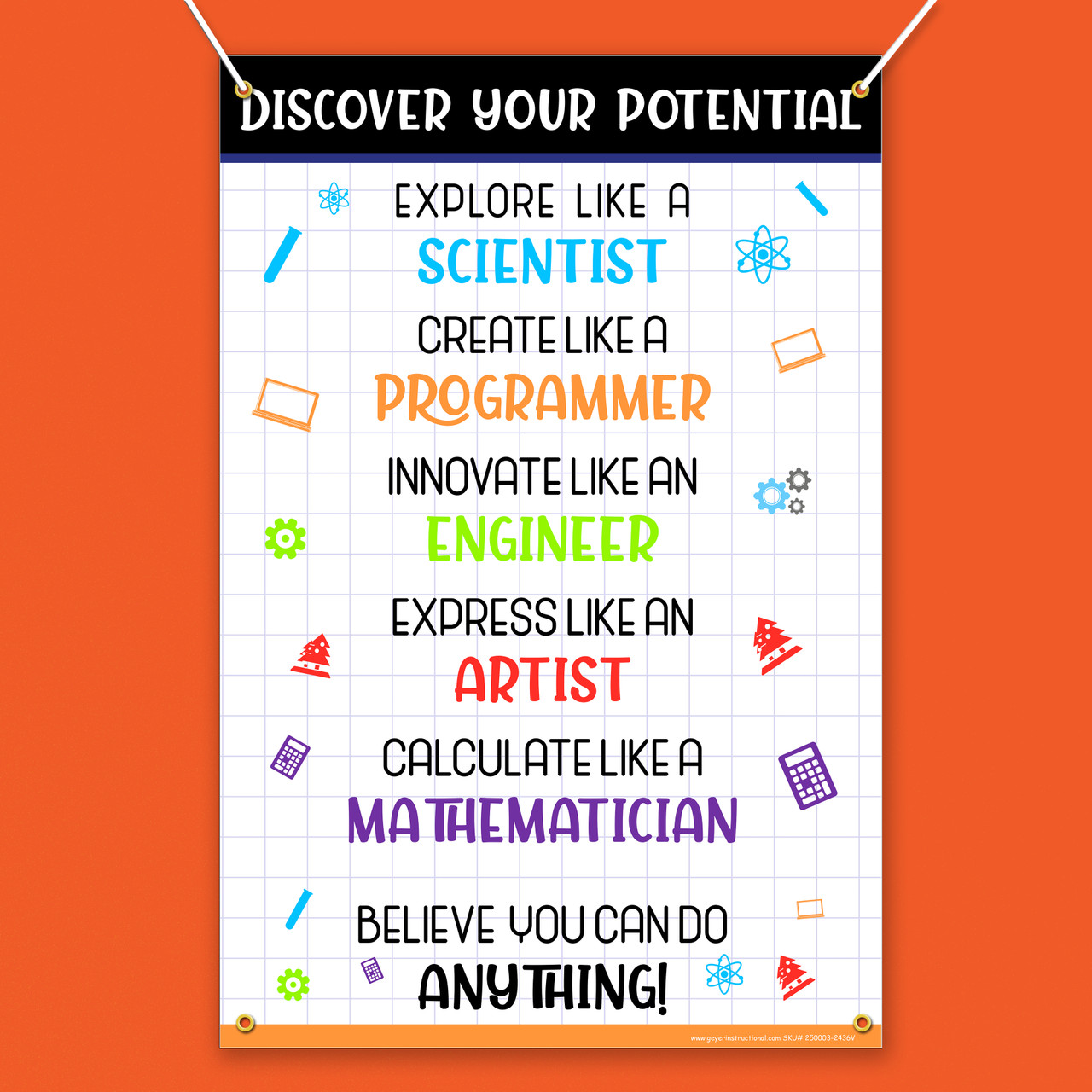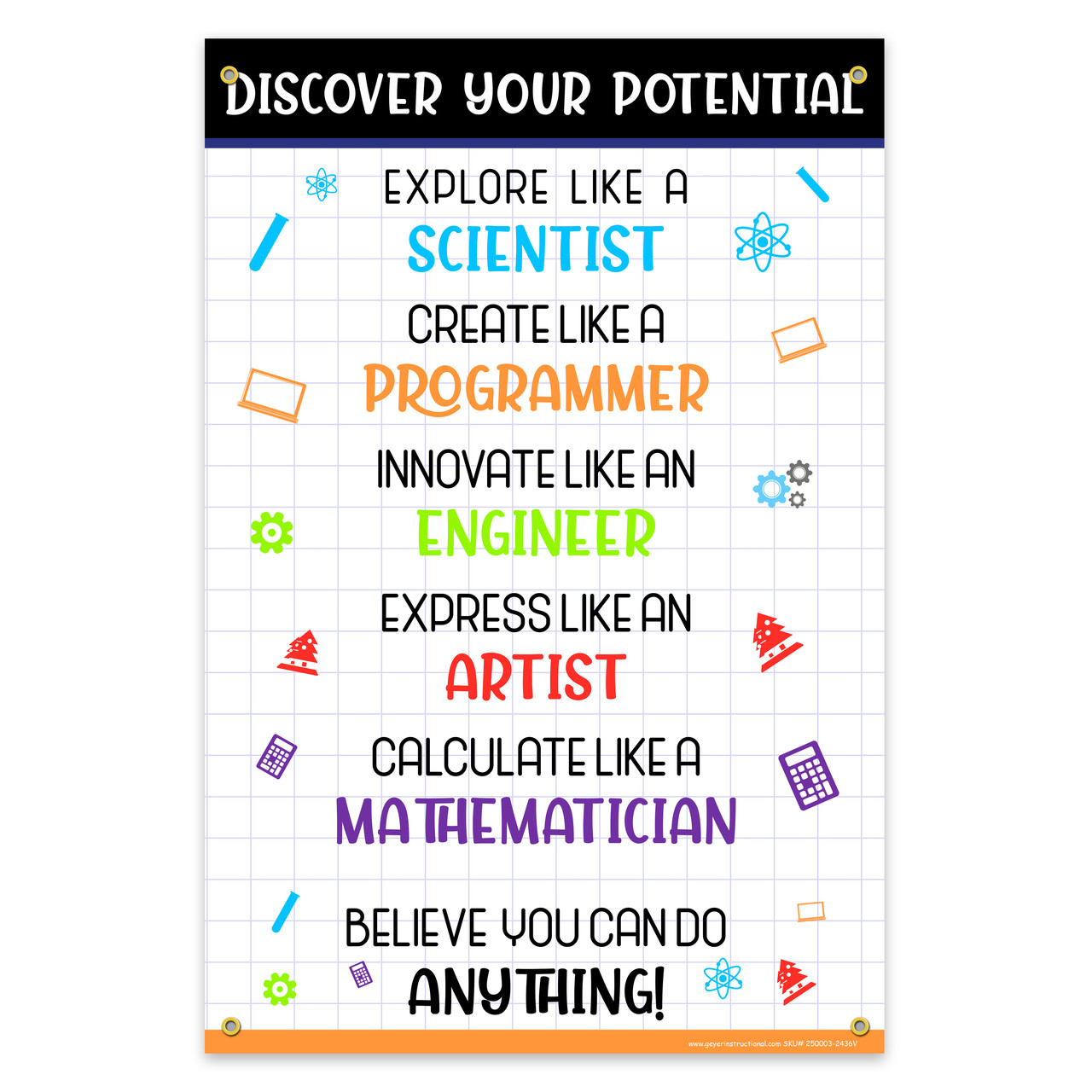You Can Do Anything STEM Poster, 24 x 36, 13 Oz Vinyl, Gromments
